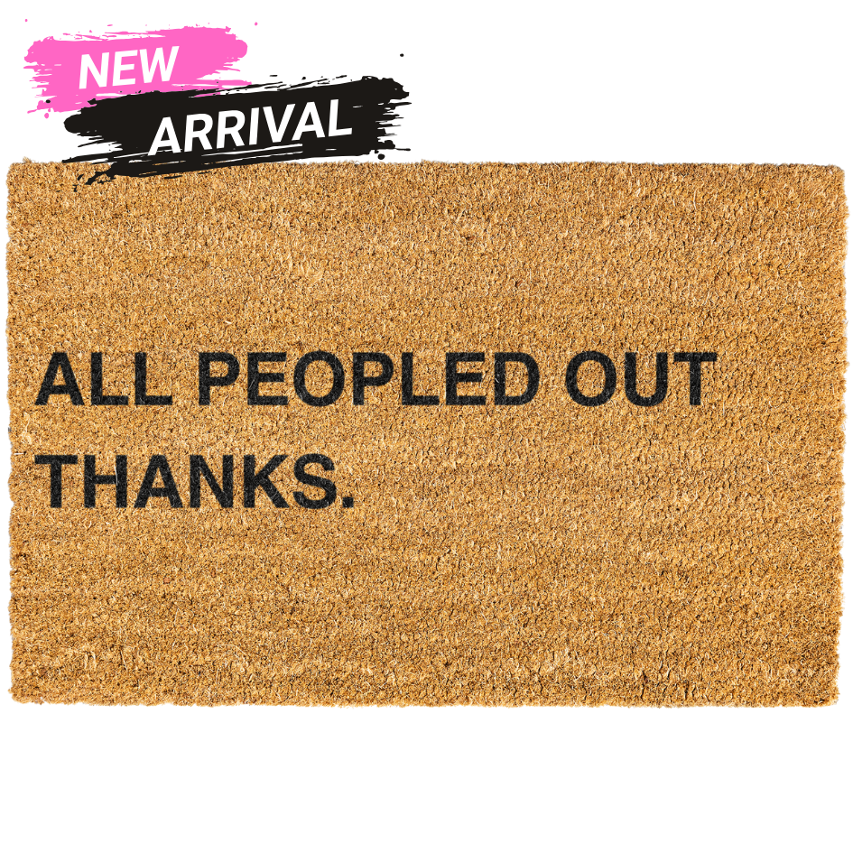 - Features letters pattern with "All Peopled Out Thanks." message Made of coir material, this doormat is built to last and will withstand the elements with ease.